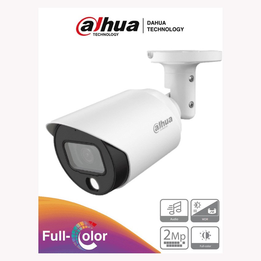 DAHUA HAC-HFW1239TN-A-LED-0360B – Camara Bala Full Color de 2 Megapixeles/ 1080p/ Microfono/3.6mm/ Metalica/ WDR Real de 130 dB/ Leds para 20 mts/ IP67 –